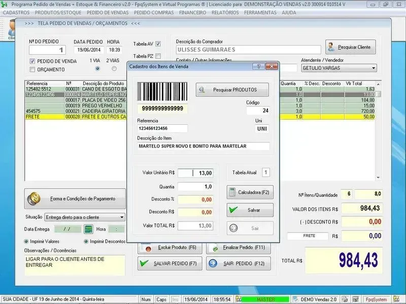Outros Recursos: Aceita leitor de código de barras, roda em qualquer versão do windows, roda direto no pendrive, direto no hdexterno e não precisa de internet para funcionar.