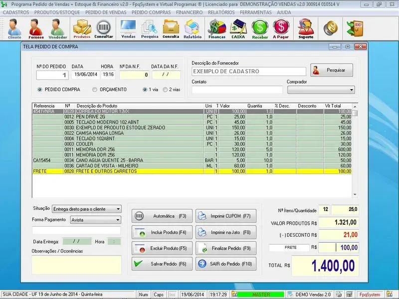 Programa Controle de Estoque e Pedido de vendas 2.0 é um software projetado para ajudar pequenas e médias empresas a gerenciar eficientemente o processo de vendas e financeiro, desde a geração de pedidos até o controle do estoque e relatórios. Nosso programa oferece uma variedade de recursos para facilitar várias etapas do ciclo de vendas e garantir que o estoque seja gerenciado de forma adequada.