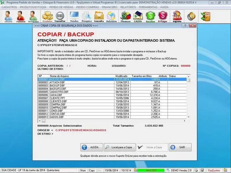 - Backup do Programa