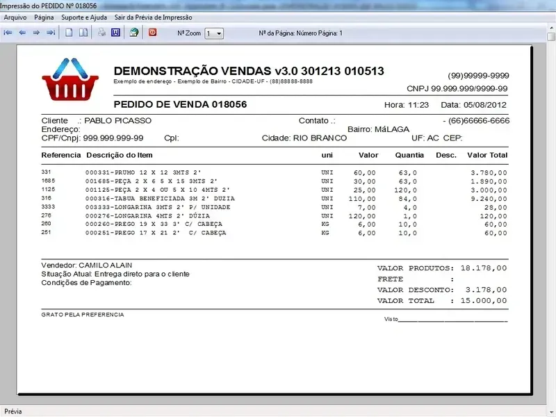 Geração de Pedidos: Permite aos usuários criar pedidos de vendas para clientes, controle de entregas, selecionando produtos, especificando quantidades, aplicando descontos, com impressão do pedido em A4 ou cupom não fiscal.