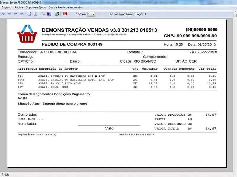 Programa Controle de Estoque, Pedido de Vendas e Financeiro v3.0 é um software projetado para ajudar pequenas e médias empresas a gerenciar eficientemente o processo de vendas e financeiro, desde a geração de pedidos até o controle do estoque e relatórios. Nosso programa oferece uma variedade de recursos para facilitar várias etapas do ciclo de vendas e garantir que o estoque seja gerenciado de forma adequada.