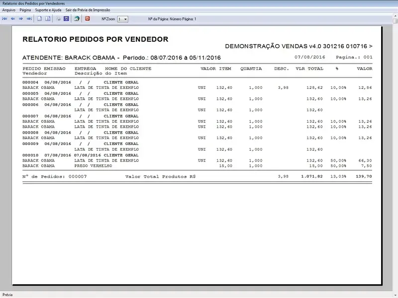 Geração de Pedidos: Permite aos usuários criar pedidos de vendas para clientes, controle de entregas, selecionando produtos, especificando quantidades, aplicando descontos, com impressão do pedido em A4 ou cupom não fiscal.