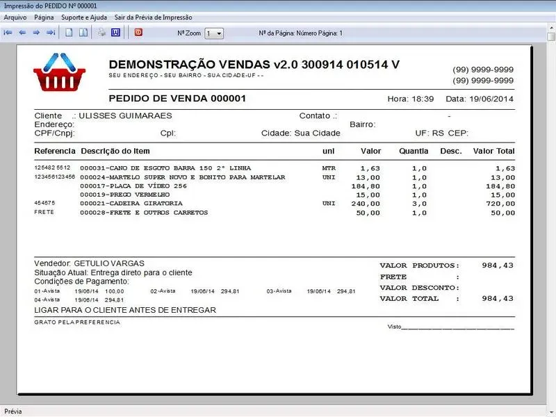 Programa Controle de Estoque e Pedido de vendas 2.0 é um software projetado para ajudar pequenas e médias empresas a gerenciar eficientemente o processo de vendas e financeiro, desde a geração de pedidos até o controle do estoque e relatórios. Nosso programa oferece uma variedade de recursos para facilitar várias etapas do ciclo de vendas e garantir que o estoque seja gerenciado de forma adequada.