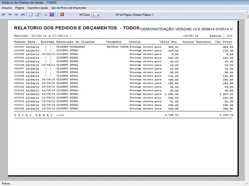 Geração de Pedidos: Permite aos usuários criar pedidos de vendas para clientes, selecionando produtos, especificando quantidades, aplicando descontos, com impressão do pedido em A4 ou cupom não fiscal.