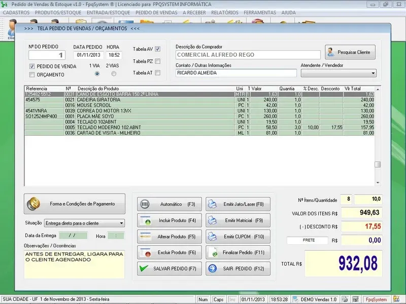 Nosso programa oferece uma variedade de recursos para facilitar várias etapas do ciclo de vendas e garantir que o estoque seja gerenciado de forma adequada.