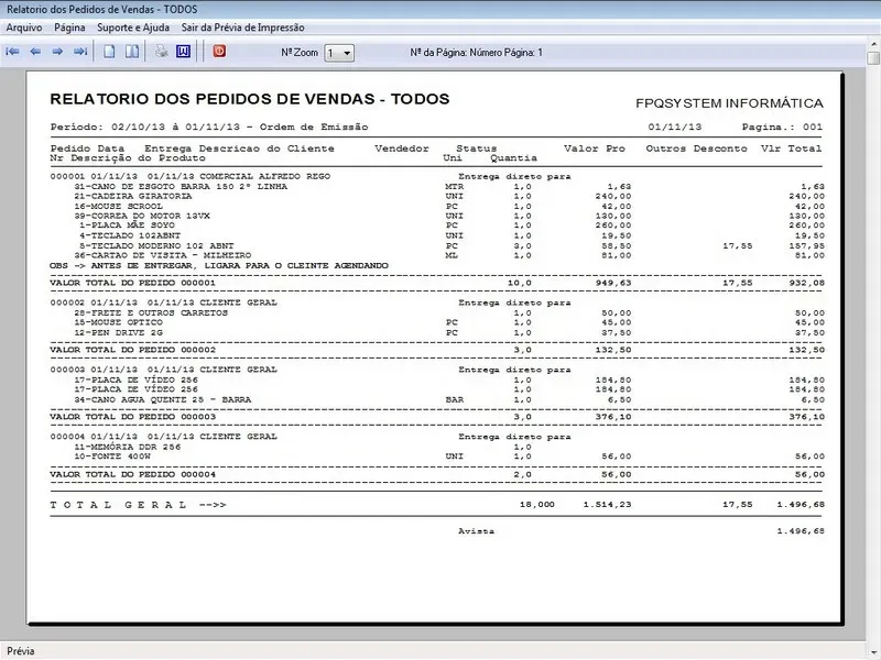 Geração de Pedidos: Permite aos usuários criar pedidos de vendas para clientes, selecionando produtos, especificando quantidades, aplicando descontos, com impressão do pedido em A4 ou cupom não fiscal.