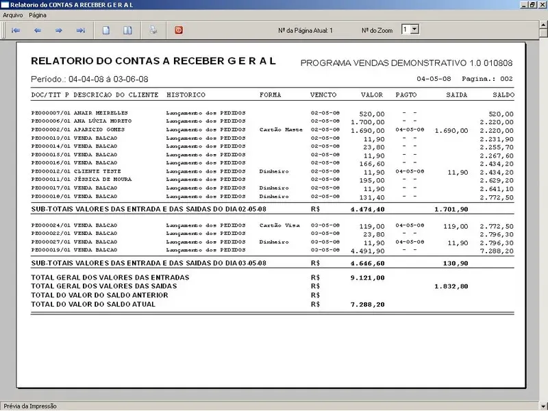 Contas a Receber: Permite gerenciar todos os pedidos finalizados, informando a forma de pagamento, PIX, Boleto, Promissória e outros.