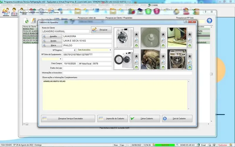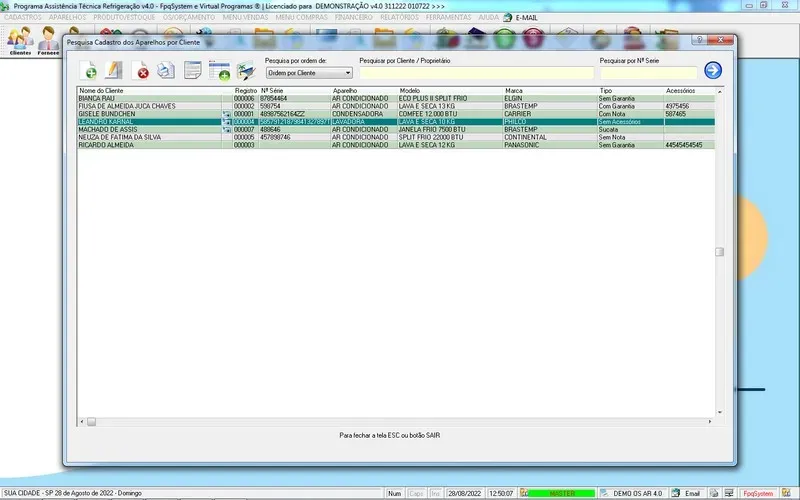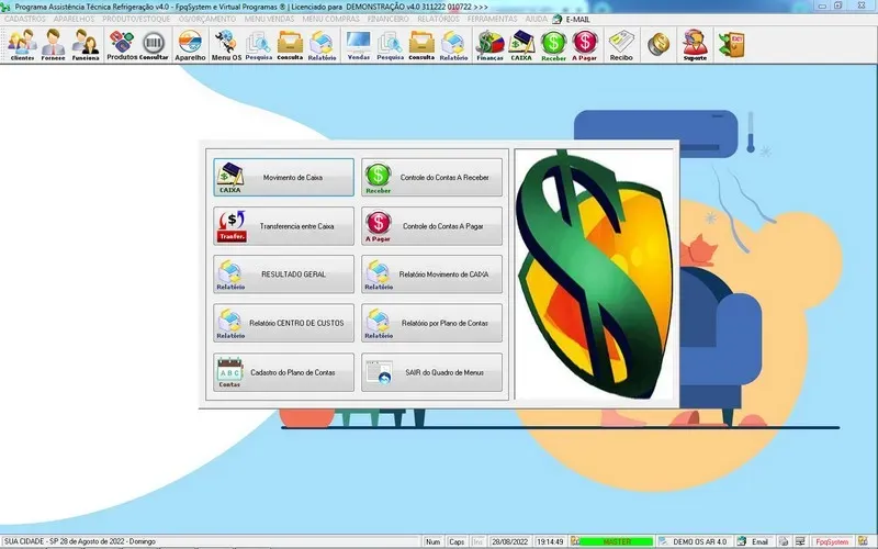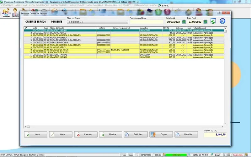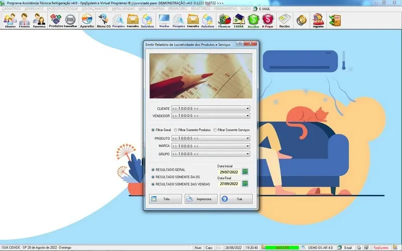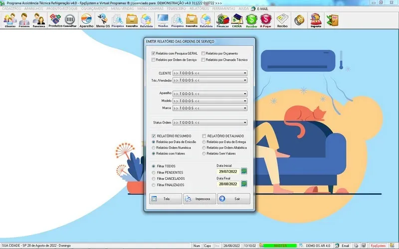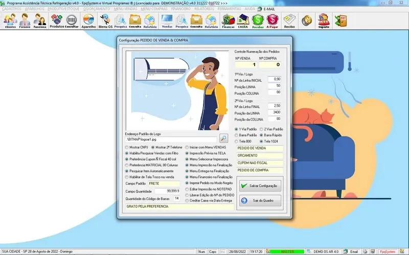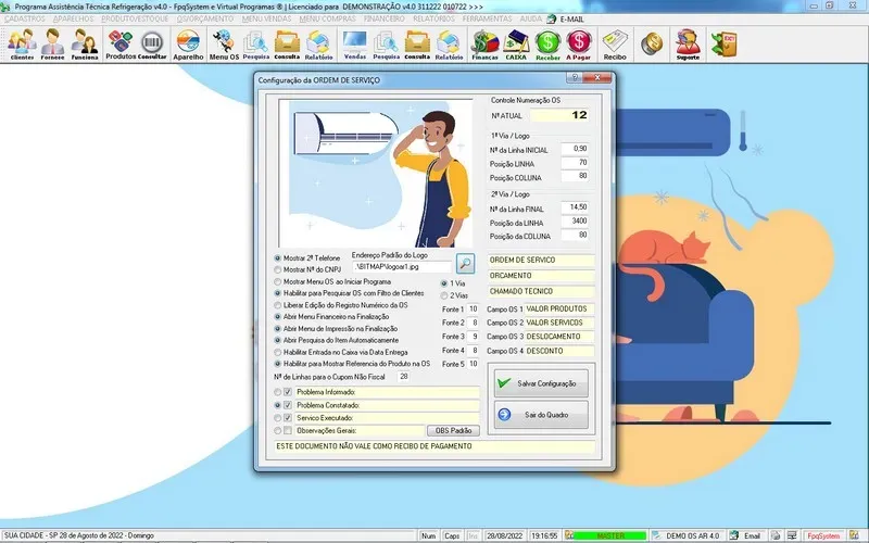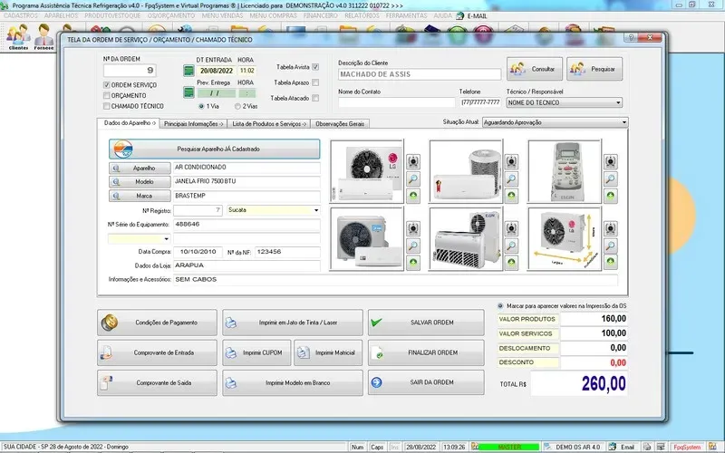 Programa Ordem de Serviço Assistência Técnica Ar e Refrigeração + Vendas, Estoque e Financeiro v7.0