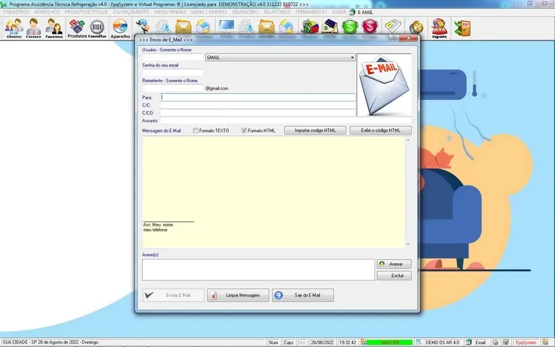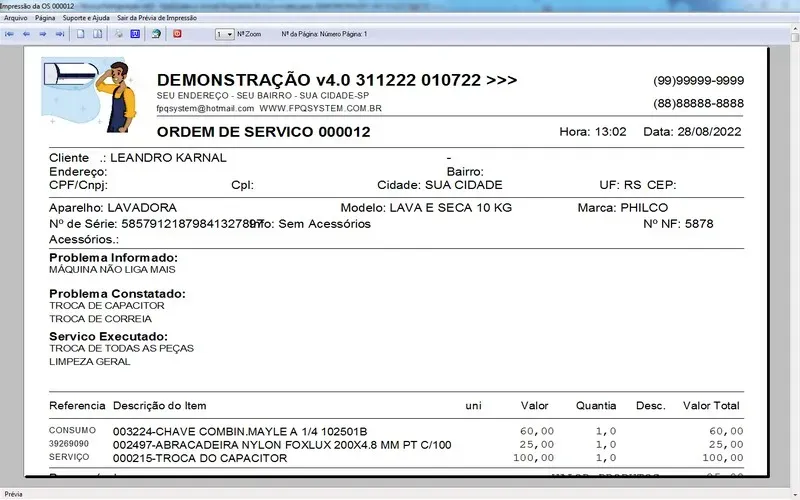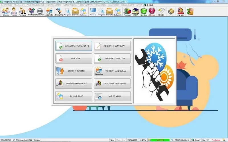 Programa Ordem de Serviço Assistência Técnica Ar e Refrigeração + Vendas e Estoque v3.0