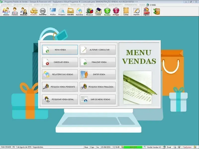 Programa Controle de Estoque, Pedido de Vendas e Financeiro v4.0 PLUS + é um software projetado para ajudar pequenas e médias empresas a gerenciar eficientemente o processo de vendas e financeiro, desde a geração de pedidos até o controle do estoque e relatórios. Nosso programa oferece uma variedade de recursos para facilitar várias etapas do ciclo de vendas e garantir que o estoque seja gerenciado de forma adequada.