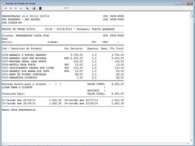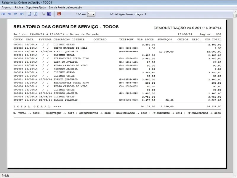 Ordem de Serviço / Orçamento / Cadastro de Clientes / Fornecedores / Atendentes / Relatório dos Serviços / Personalizar Fundo de Tela / Configurar Logomarca / Pedido de Vendas / Pedido de Compras / Controle de Estoque / Financeiro Completo / 2 Fotos nos produtos / Pesquisa de Produtos / Relat