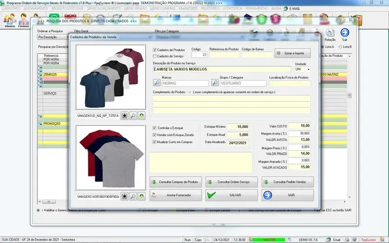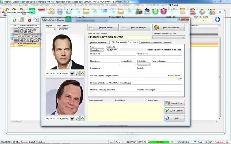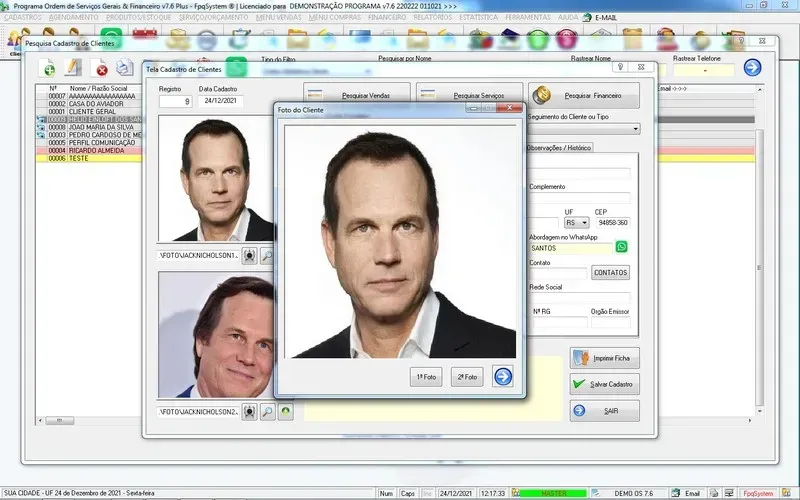 Ordem de Serviço / Orçamento / Clientes / Foto dos Clientes / Fornecedores / Atendentes / Relatório de OS / Personalizar Fundo de Tela / Logomarca / Pedido de Vendas / Pedido de Compras / Controle de Estoque / Financeiro Completo / 2 Fotos nos produtos / Relatório de Vendas / Relatórios Esta