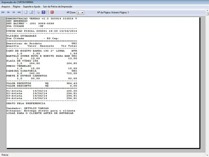 Geração de Pedidos: Permite aos usuários criar pedidos de vendas para clientes, selecionando produtos, especificando quantidades, aplicando descontos, com impressão do pedido em A4 ou cupom não fiscal.