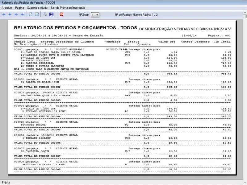 Programa Controle de Estoque e Pedido de vendas 2.0 é um software projetado para ajudar pequenas e médias empresas a gerenciar eficientemente o processo de vendas e financeiro, desde a geração de pedidos até o controle do estoque e relatórios. Nosso programa oferece uma variedade de recursos para facilitar várias etapas do ciclo de vendas e garantir que o estoque seja gerenciado de forma adequada.