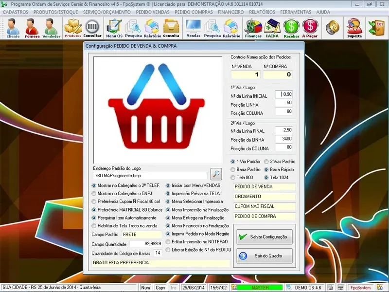 Ordem de Serviço / Orçamento / Cadastro de Clientes / Fornecedores / Atendentes / Relatório dos Serviços / Personalizar Fundo de Tela / Configurar Logomarca / Pedido de Vendas / Pedido de Compras / Controle de Estoque / Financeiro Completo / 2 Fotos nos produtos / Pesquisa de Produtos / Relat